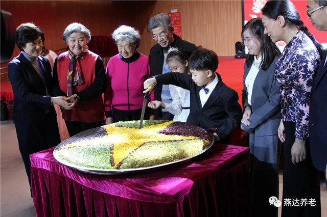 燕達養護中心副總裁李海燕、三河市婦聯祝志敏主席、養護中心總經理周素娟女士、常務副總崔凱先生、在住賓客代表李之勇,趙淑琴,殷鳳彩及燕達小小主持人妞妞、徐子浩共同切重陽糕,并由工作人員將重陽糕一一遞送到長者手中,送去甜蜜,接收祝福!